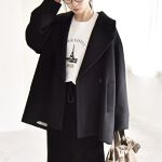 普段サイズ:38 骨格:ナチュラル パーソナルカラー:ブルべ夏 着るだけで映える、コクーンPコート。中はブラックのワントーンでマニッシュに。