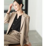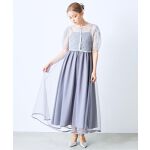 ふんわりしたワンピースドレスにオーバーサイズのテーラードジャケットを合わせて、抜け感のあるパーティースタイル。