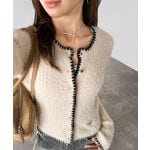 季節感たっぷりのシャギーリブ素材に配色ステッチで 遊び心をプラスした大人可愛いニットカーディガン。 裾あたりにプレートが付いているので、 シンプルになりすぎずコーデのアクセントに♪