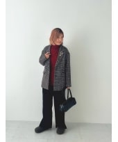 ツイード生地が可愛いコートと コートと同生地のスカート! 合わせて着たときのセット感かわいいです! ロングブーツも合わせて 大人のミニスカコーデです!