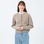 柔らかな手触りのショート丈ケーブルニットカーディガン。ストレッチ性が高く、膨らみのある生地感です。肩周りはリラクシーなサイジングで、シーズナルなシルエットを楽しめます。水洗いできるのも嬉しいポイント!