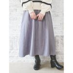 フェザーカーディガンはキラキラなビジューボタンが華やかなアクセントに! ポワンとした袖が腕周りを華奢に見せてくれます! 合わせたスカートはマイクロコール素材のロングスカートです! ウエストは総ゴム仕様で快適な履き心地に! 柔らかなブルーがフェミニンな雰囲気を演出!