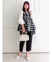 優しい着心地が特徴のミルキーニットは、Vネックでネックラインをすっきり見せてくれるだけでなく、ボリューム袖となっており、二の腕もしっかり隠してくれるのが嬉しい◎ボトムスは、 ベルトが付属しているので、ウエストマークすることでバランスよく見せられます◎