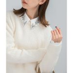エアリーニットシリーズのビスチェです! レイヤードスタイルには欠かせないオススメアイテムです◎ ビスチェの下に着用しているシャツは、ビジュー付きの襟をつけて着用することも可能。 その日の気分で、華やかにもベーシックにも着こなせるます!