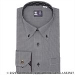 また台襟やカフスにワンポイント色糸が施されているので、ノーネクタイコーデでシャツの良さが分かるように意識してみました◎。