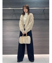 フェザーヤーンパーカーが主役のコーデです。 ボトムはセンタープレスがきいたウールパンツにしてきれいめカジュアルにしました。