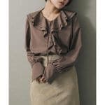 トラッドガーリーコーデ〇 ブラウスの大きなフリルはトレンドのジャケットスタイルと相性抜群です! オンオフ問わず大活躍なジャケットはややオーバーサイズなのでこなれ感もばっちり! ぜひチェックしてくださいー!