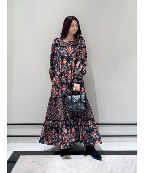 レトロな雰囲気が漂うボタニカル柄が映えるティアードワンピース!