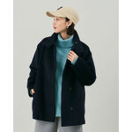 ネイビーコートにミントカラーのタートルを合わせた爽やかコーデ。グレーのワイドパンツで上品にまとめ、キャップで抜け感をプラスした大人のカジュアルスタイル。
