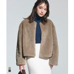 着用サイズ・カラー ■裏起毛デニムフレアパンツ M/Charcoal ■アンゴラタッチボートネックニット M/Ivory ■ウォッシャブル フェイクファーノーカラーブルゾン M/Beige