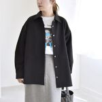 普段サイズ:36 骨格:ウェーブ パーソナルカラー:ブルべ冬 パープルのシャツが主役のカジュアルなレイヤードスタイル。