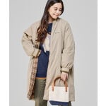 カジュアルなパーカーにロング丈のジャケットを合わせたキレカジコーデ。ジャケットの裏地のチェックでカジュアルすぎず上品な印象に。袖のグリーンをパンツで拾って多色使いでもまとまりのあるスタイリングに。
