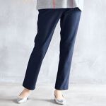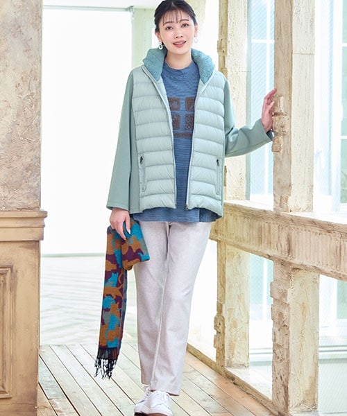 【大きいサイズ】ニュアンスブルーで楽しむ大人のカジュアルスタイル。裏起毛の暖パンにスニーカーを合わせました。