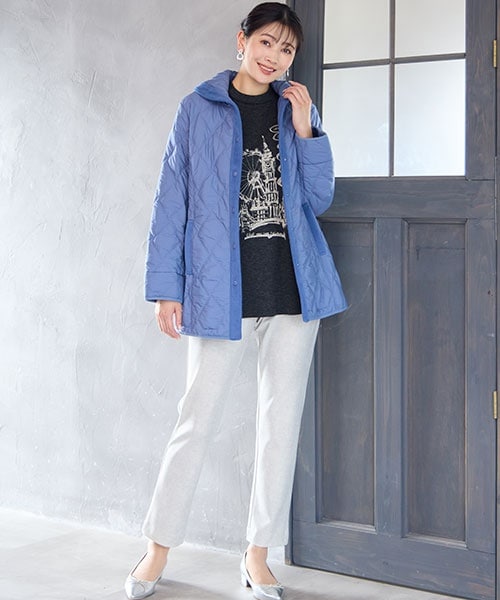 【大きいサイズ】軽やかに羽織れて暖かいキルティングコート。爽やかなブルーならカジュアル過ぎず軽快に楽しめます。