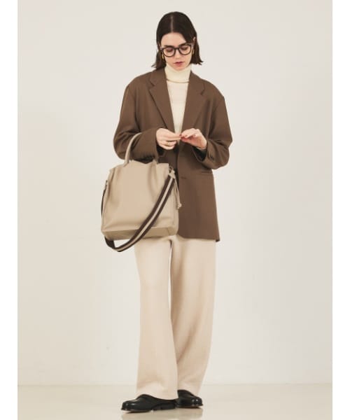 カラ―:ベージュ ゆるっとしたニットパンツにジャケットを合わせた抜け感のある大人スタイルに、 きちんと見えするトートが好相性。通勤にも休日にも◎