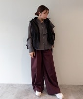 【洗える・S/M/Lサイズあり】ツイルストレッチタックワイドパンツ