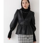 ペプラムデザインのブラウスは、深めのVネックでタンクトップやタートルニットなどインナーをチェンジしてレイヤードスタイリングを楽しめます♪また、フロントのくるみボタンを外してジャケットのように羽織りとしてもお使いいただけます。