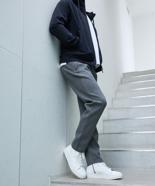 休日のスポーティーなコーディネートとも好相性なレザーハイカットスニーカー