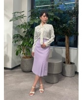 フロントにあしらったラッフルデザインやパール釦が華やかな印象のブラウスです。さらっとした肌触りでややストレッチ性もあり、ストレスフリーでお召しいただけます。