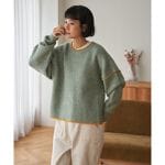 表情のある畦編みに、手編み風の配色ステッチをあしらったニットプルオーバー。 首元はモックネック、サイドスリット入りで、ほどよい抜け感をプラス。 デニムを合わせてカジュアルに、スカートと合わせて女性らしくもできる一着です。