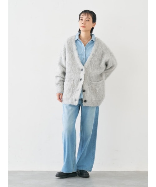 ボリューム感のある編地はワイドパンツやフレアスカートとも相性抜群です。 フォルムのあるシルエットで、軽い羽織としてはもちろん、コートを着る季節まで長く活躍します。