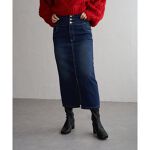 【ボトムス】ハイウエストデザインで脚長効果抜群のナローデニムタイトスカート。