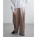 【トップス】ふんわりとしたアルパカタッチの素材感と、メリハリのある配色カラーが目を引くカーディガン。 【ボトムス】しなやかなサテン素材が光を受けて美しく煌めく上品なワイドパンツ。