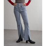 【ボトムス】脚のラインを美しく見せるハイウエストデニム。センターラインとフレアシルエットが相まって、すっきり脚長な印象に。