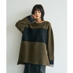 【着用サイズ ニット:F パンツ:S】袖にカットソー生地とチュール生地をドッキングした、レイヤード風デザインのニットプルオーバー。肌触りの良いミドルゲージで編みたて、軽やかな着心地です。