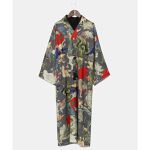 着る、NIPPON ART◆日本の様々な浮世絵をコラージュデザインした、倭物やカヤならではのオリジナル柄をプリント。繊細なタッチと大胆な構図が目を惹く着物風ワンピース。 半襟を合わせたような二重仕様の衿元になっており、和装感覚で着られるデザインです。