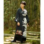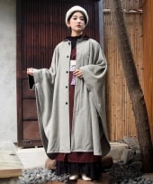 有名なニットの産地・新潟県見附市でつくられたオーバーサイズのニット羽織と、鉄線(てっせん)の花模様を大胆にあしらった華やかなワンピースのコーディネート。 着物代わりにハレ着としてもご着用いただけます。大人な和モダンスタイルに。