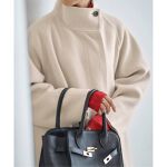 【Super160スタンドコート】 ロングでも生地感軽く着れ、スタンドの襟がカッコよく着れる。 肩がラグランで着られてる感がないので、 スッキリめに着たいかオーバーめに着たいかで サイズ選びをしても良さそう。