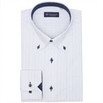 青と茶系をベースに秋冬素材の小物やパンツを組み合わせ、季節に合わせたコーディネートにしました。 シャツは立体感あるストライプが特徴です☆ 角切り仕様のカフスや色ボタンもワンポイントに光っていてお洒落でカッコイイシャツです☆