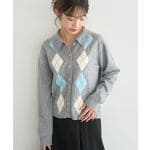 【着用サイズ カーディガン:F パンツ:S】もちもちとした生地感のアーガイル柄が可愛いカーディガン。厚みがないのですっきりとしたシルエットで着用が出来ます◎