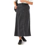 カジュアルなデニムスカートにキレイめなカーディガンを合わせた大人カジュアルなコーデ。カーディガンのグリーンを拾って同系色で合わせたスウェットがアクセントに。