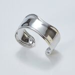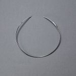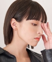 大ぶりピアスはまとめ髪にも好相性。手もとはボリューム感のあるバングルで、スマートな装いに遊び心をプラス。