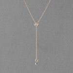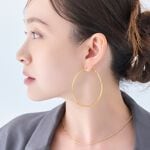 デコルテが大きく開くスタイルには、Yラインのネックレスを添えてアクセントに。大ぶりピアスでバランスをとれば、トレンド感を演出できます。