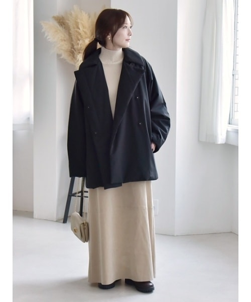 普段サイズ:36 骨格:ウェーブ パーソナルカラー:ブルべ冬 黒の中綿コートを主役に、ニットとスカートはベージュでやわらかくまとめました。