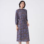 光沢のあるカシミヤ混コート。発色が良く、カシミヤならではのソフトさがあり、高級感のある1着です。ミドル丈でスカート、パンツともバランス良くコーディネートできます。インナーには エッチングという技法を使ったフラワー柄をプリントしたポリエステル素材のワンピース。