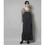 ロングダウンコードに、デニムワンピースを合わせた大人カジュアルスタイル