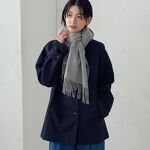 ブルーのマフラーで華やかに