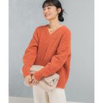 オレンジ×ブラウンで秋コーデ。 ニットは着心地もチクチクせず快適。 オレンジの色味がかわいいので気分も上がりそう◎ ネイビーのpコートで締めて大人カジュアルにしました^_^