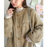 ふんわりとしたコクーンシルエットが女性らしい柔らかさを引き立てるツイードジャケット。