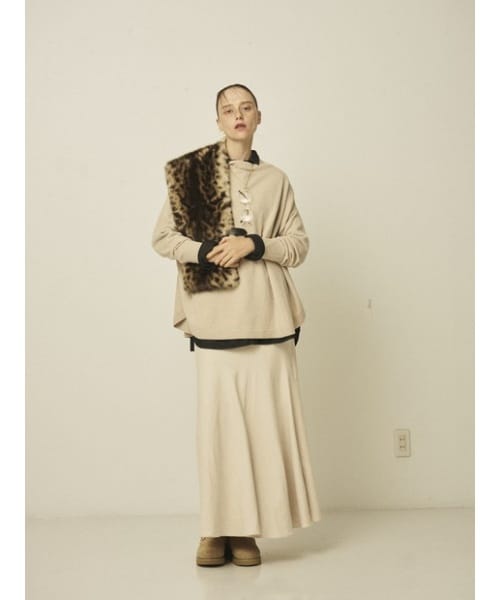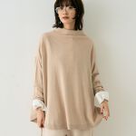 シャツテールのような緩やかなカーブを描く裾ラインと、 ゆったりとしたオーバーサイズシルエットが特徴。 まるでポンチョを羽織ったようなリラックス感を演出します。
