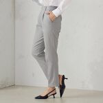 ジャケットお仕事スタイル。テーパードパンツは、伸びが良く、穿き心地もいいのに、スタイルアップが叶う大人気のパンツです◎ ダボつかない仕立てなので、お仕事や綺麗めスタイルに。