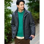 黒アウターにグリーンニットを差し色にした、季節感たっぷりの大人カジュアル。コーデュロイパンツであたたかみをプラスし、リラックスした街歩きスタイルに◎