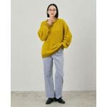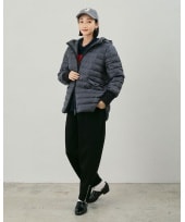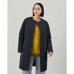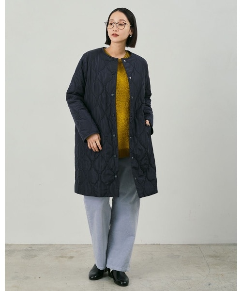 キルティングコート×マスタードニットで季節感を。ライトグレーのワイドパンツで抜け感を出して、ラフなのにきちんと見えるバランス◎