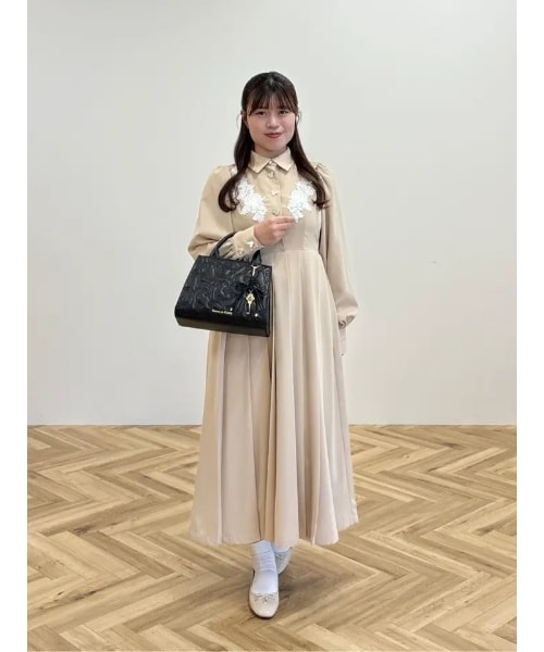 【チャーム付きリボンキルティングトートバッグ】リボン柄キルティングになっているバッグ。四角っぽい形と鍵モチーフチャームのゴールドカラーが可愛く大人な印象にしてくれます♪