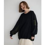 きれいな表面感のニット素材に配色の異素材生地を組み合わせたニットプルオーバー。左腕のユーティリティポケットのミリタリーライクなディテールもポイントです。裾のドロストでシルエットアレンジも可能。