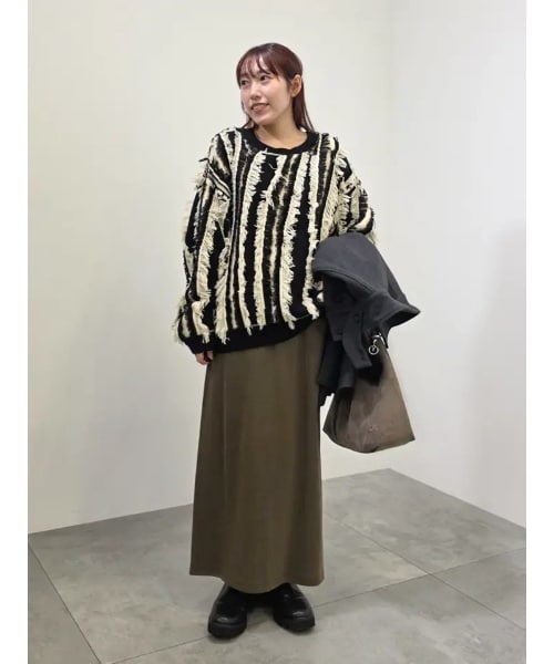 【着用サイズ ニット:F スカート:M】着込めるゆったりとしたシルエットのトップスが増える冬でも、このタイトスカートならスタイリングがすっきりとまとまります!